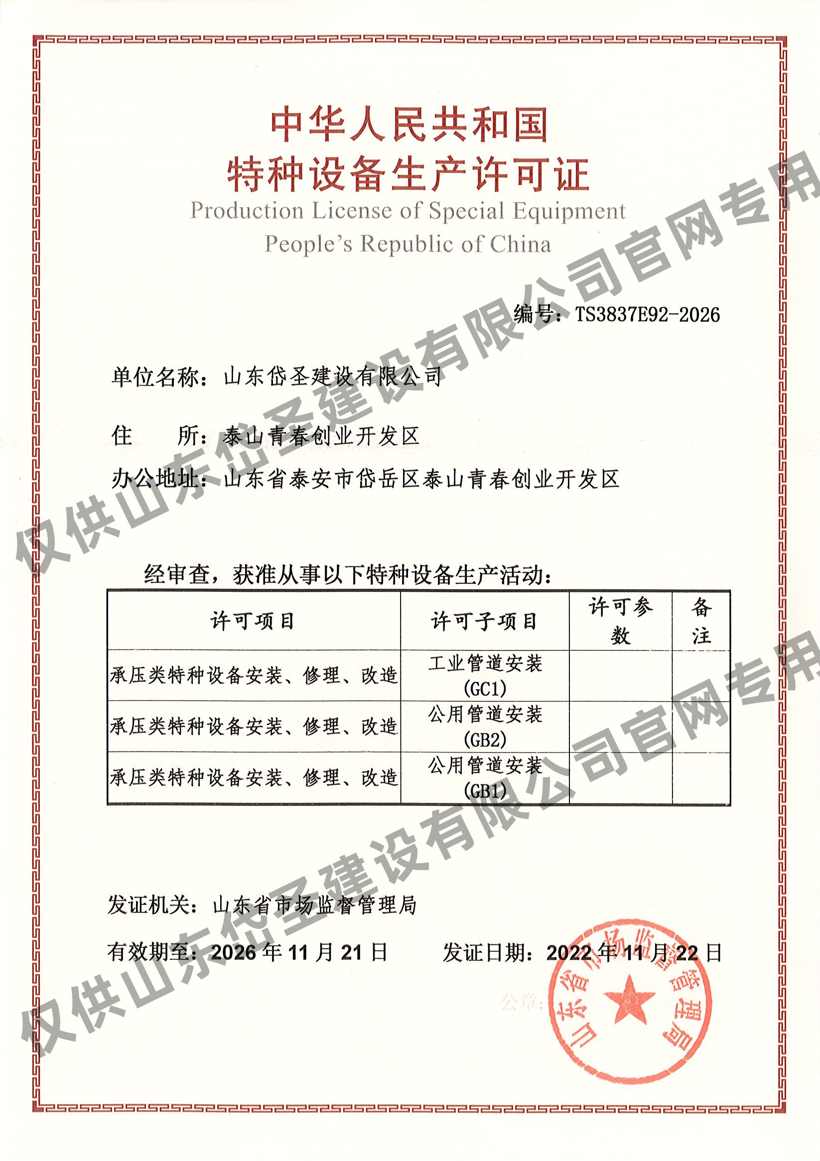 GC1、GB1、GB2压力管道安装资质