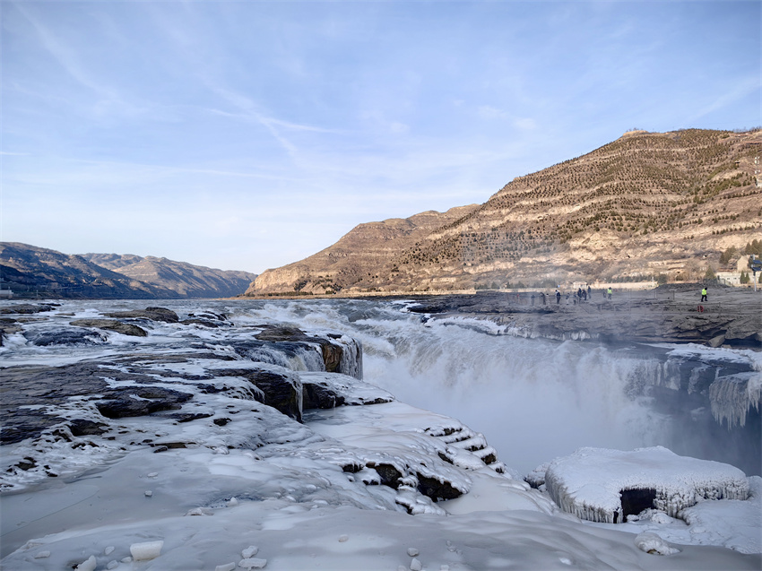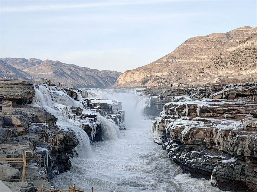 【黄河壶口瀑布】黄河奔流至此,两岸石壁峭立,河口收束狭如壶口,故名壶口瀑布。是一条金黄色干流大瀑布,也是移动式、潜伏式大瀑布。