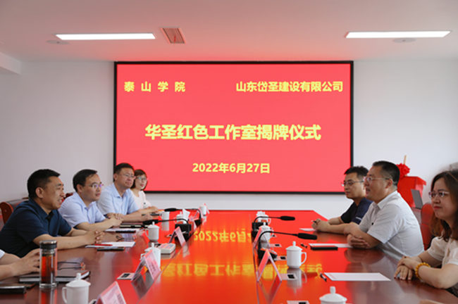 为进一步促进校企合作的深度融合,充分发挥校企双方优势,探索新形势下党建引领、校企合作、产教融合的新机制和新模式,形成“资源共享、党建共建、优势互补、协调发展”的新格局,岱圣建设和泰山学院达成共识,决定在山东岱圣建设有限公司总部成立“华圣红色工作室”。