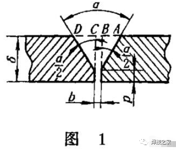 如图1所示带钝边V形坡口焊缝,坡口角度为α,间隙为b,钝边为P,根据解三角形的方法: