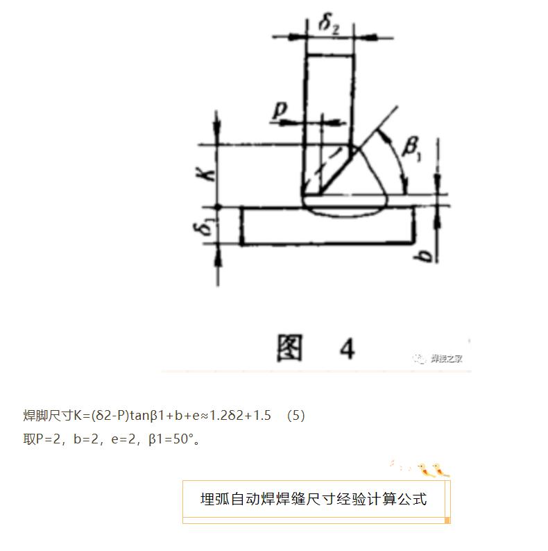 (3)按上述方法计算出的焊缝尺寸值,只是一个参数值,实际应用中可视具体情况,在参数基础上略作调整,一般取公差±1mm左右;