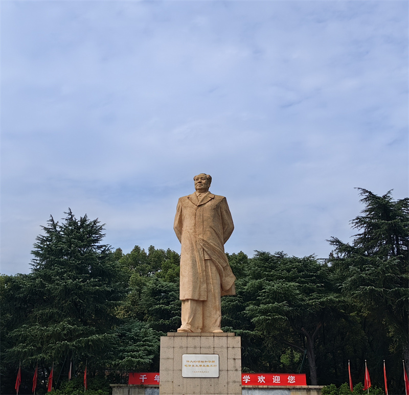 【毛泽东同志铜像广场】毛泽东铜像身躯高大,体态稳健,面带微笑而又沉思,成功地塑造了领袖在开国大典时的伟人风采。铜像基座上,镌刻着江泽民题写的“毛泽东同志”5个贴金大字。