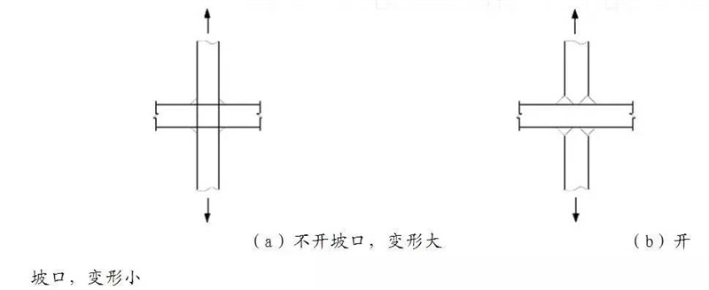 图3:T形接头板厚较大时采用开坡口角对接焊缝