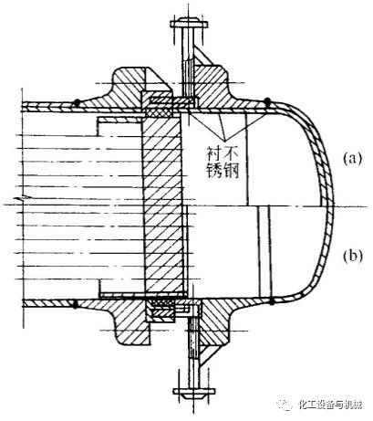 (1)贴面式(德国):管板焊在设备法兰密封面上(图12a)。