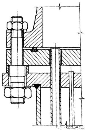 (2)镶平式(原苏联ГОСТ标准):管板焊在设备法兰密封面其平(图12b)。