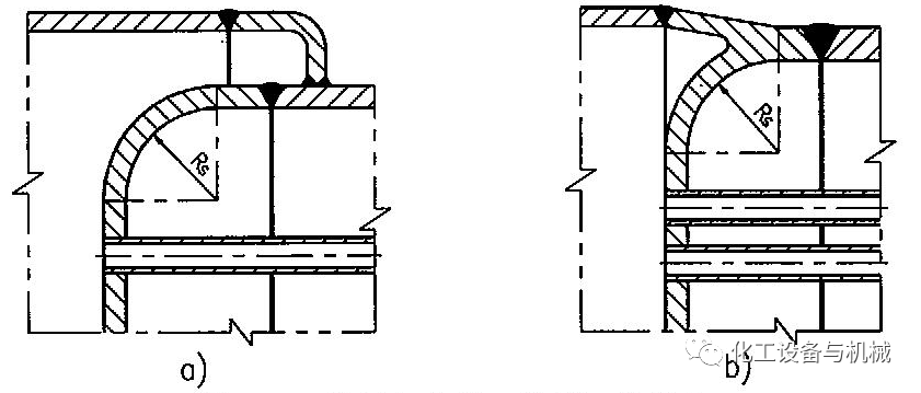 Ⅰ型管板与壳体(管箱)的连接(见图13a)和Ⅱ型管板与壳体(管箱)的连接(见图13b)。
