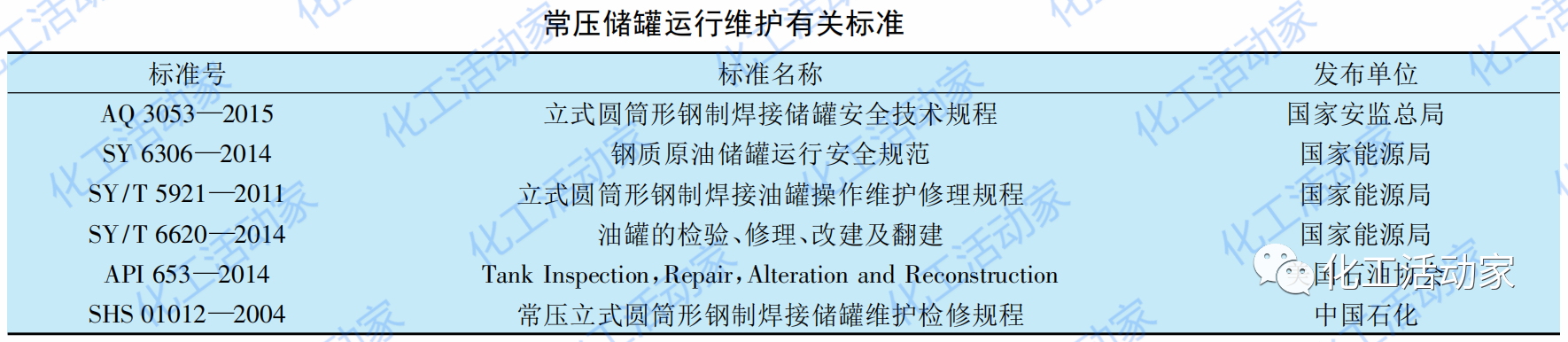 常压储罐运行维护方面的标准,主要有安全生产行业标准、石油天然气行业标准、中石化标准和API标准。