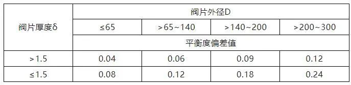 (1)将阀座平装在专用夹具上,限制阀座的转动,将阀片放于阀座正确位置上;环状阀片的平面度偏差应符合下表(单位:mm)中的规定。
