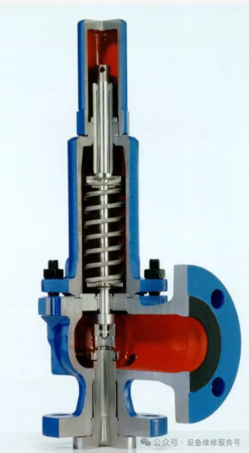 5.弹簧:位于阀瓣上方,提供关闭力,当系统压力低于设定值时,弹簧会将阀瓣压回阀座,恢复密封。