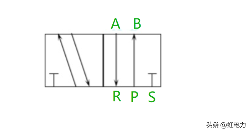 一般,进气口用“P”表示,排气口用“R”,“S”表示(与进气口在同一侧),与执行元件连接的气口用“A”、“B”表示