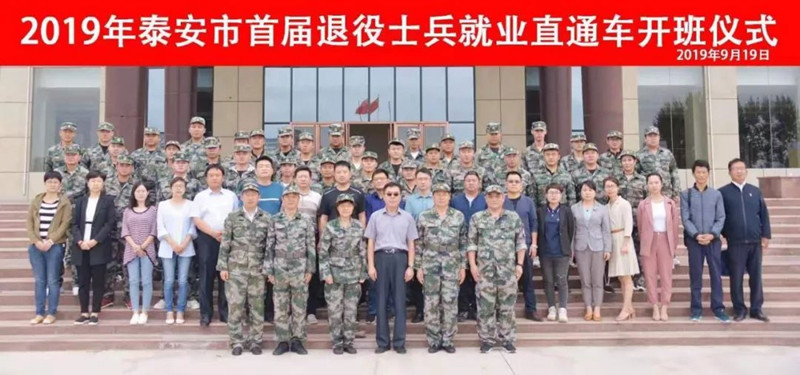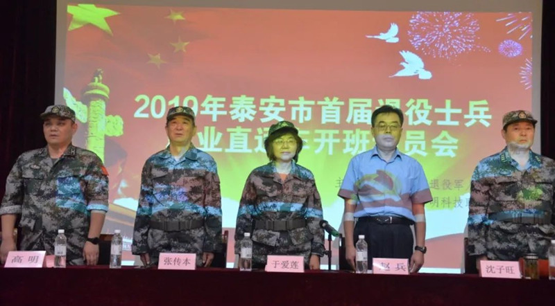 泰安市退役军人事务局联合山东力明科技职业学院举办2019年退役军人就业直通车培训班(试点),为退役军人提供免费的高水平社会职业技能培训和创新创业培训,为未就业的退役军人遴选优质企业选择就业,让退役军人明明白白报名、踏踏实实就业。山东岱圣安装有限公司受邀参加开班仪式,生产副总经理李焕兴代表发言。