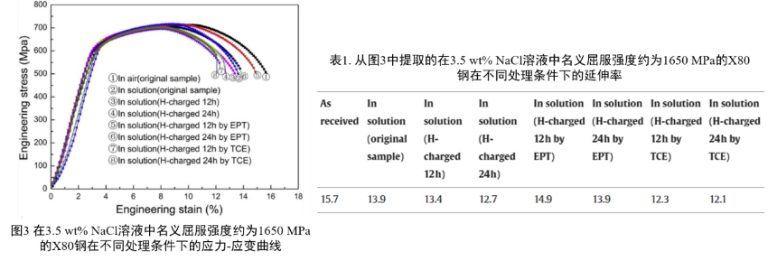 当温度从 60 °C 升高到 150 °C 时,高强钢在某些腐蚀介质中的强度和延性显著下降,但这种关系并非线性。