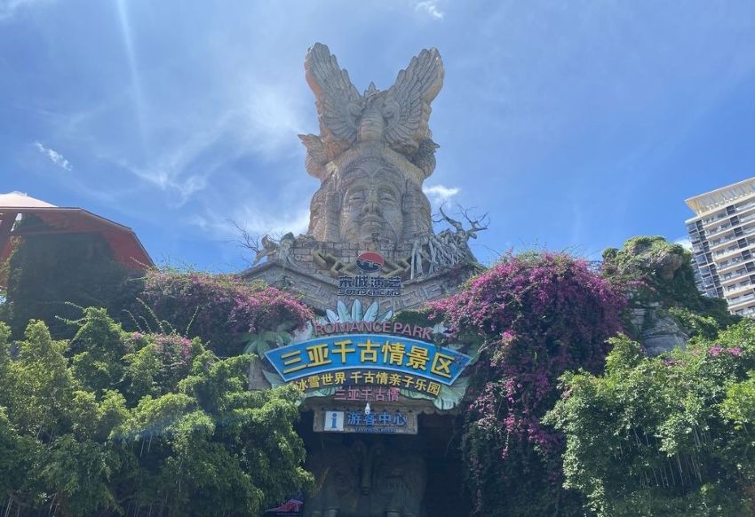 三亚千古情景区,是宋城演艺打造的大型黎苗文化主题景区、海南文化地标。景区集大型歌舞演艺、民俗体验、主题街区、高科技互动于一体;核心演出《三亚千古情》,以落笔洞万年回声、冼夫人、海上丝路、鉴真东渡、鹿回头传说为主线,用巨型LED390+套舞台机械、高空杂技与全息投影,浓缩海南万年人文史诗;园区内崖州古街、黎村苗寨、南海女神广场等打卡点,构成沉浸式的千年文化之旅。