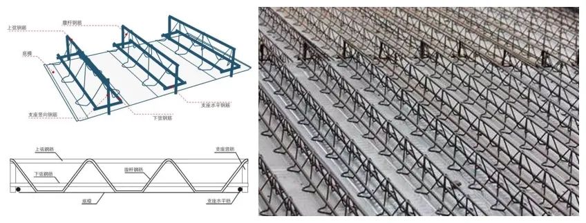 钢筋桁架楼承板是将钢筋桁架与镀锌压型钢板焊接成一体的组合模板,减少了模板的架设与拆卸,具有经济、方便、安全、可靠的特点。钢筋桁架楼承板施工时要合理排版、尽量降低损耗及现场切割,现场焊栓钉时根部焊脚应均匀饱满。
