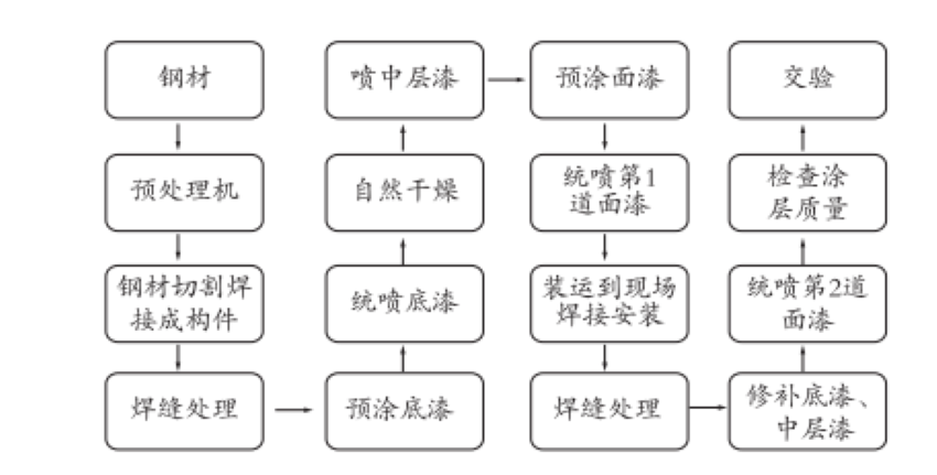 中层漆中,水性丙烯酸工业涂料是一种以高性能水性丙烯酸乳液为基料,加入颜料、填料、助剂等成分制成的环保型单组份自干型涂料。水性丙烯酸工业涂料的产品特点是voc含量低,气味小,环保无毒,不燃不爆,耐候性好,具有极佳的金属质感和金属光泽,优异的保光保色性,涂膜坚韧、耐冲击和耐磨性好,抗划伤;具有优异的耐酸、耐碱、耐多种化学药品和耐盐雾性能。另外,还有环氧重防腐涂料,其主要采用环氧树脂作为漆基,将特种橡胶、沥青材料、石油树脂等混入其中,优化涂料的性质,然后加入颜料、填料、助剂、固化剂等,形成双组分重防腐涂料。能形成致密性较好的抗渗透性漆膜,在钢铁表面与水气、氧气、腐蚀介质之间形成有效的阻隔,避免出现腐蚀问题,在酸、碱、盐等腐蚀环境中的应用效果较为明显,并且附着能力较好,在实际应用过程中不会产生较大的收缩率。