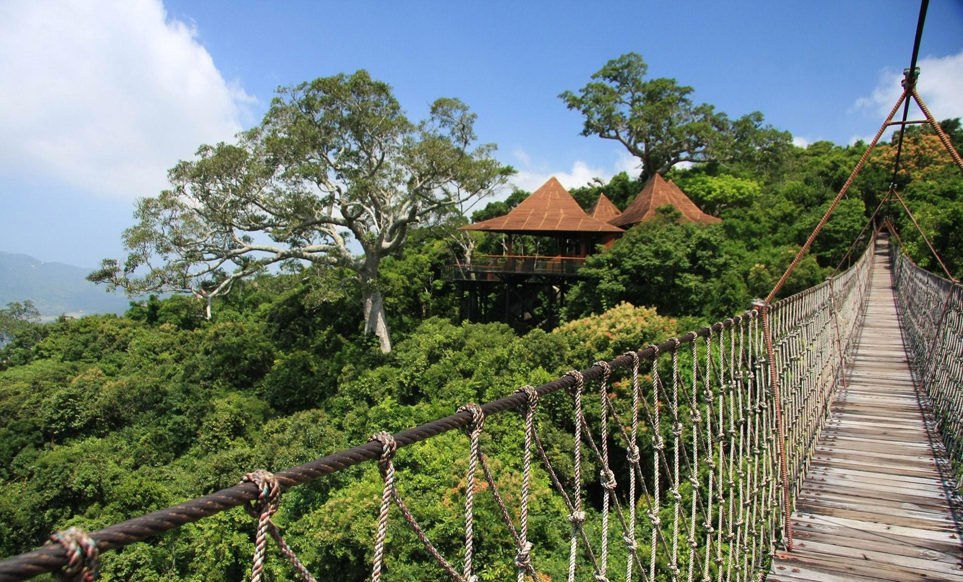 亚龙湾热带天堂森林公园,三亚的城市绿肺。这里有《非诚勿扰2》同款过江龙索桥,可漫步云端;全海景玻璃栈道,能俯瞰天下第一湾;茂密雨林与鸟巢木屋相映成趣。是团建中亲近自然、释放压力的绝佳选择。
