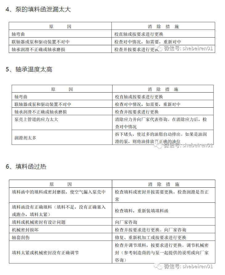 1)泵工作时振动,可能是泵与电机轴中心线不重合、主轴弯曲、紧固螺栓松动、叶轮存在偏心。