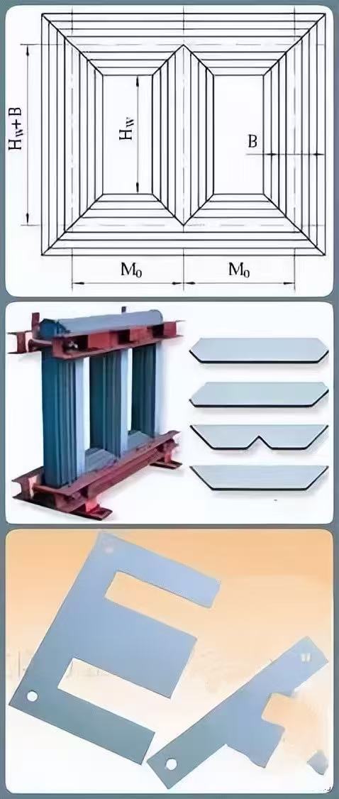 铁心是变压器中主要的磁路部分。通常由含硅量较高、厚度为0.35或0.5mm、表面涂有绝缘漆的热轧或冷轧硅钢片叠装而成,铁心分为铁心柱和铁轭两部分,铁心柱套有绕组,铁轭闭合磁路之用。铁心结构的基本形式有心式和壳式两种。