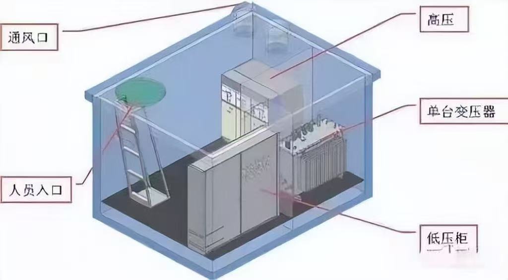 箱式变电站结构与各种接线设备所需空间有关。环网、终端供电线路方案,设计有封闭、半封闭两大类,高低设备室分为带操作走廊和不带操作走廊式结构,可满足六种负荷开关、真空开关等任意组合的需要。高压室、变压器室、低压室为一字形排列,根据运输的要求设计有整体式和分单元拆装式两种。