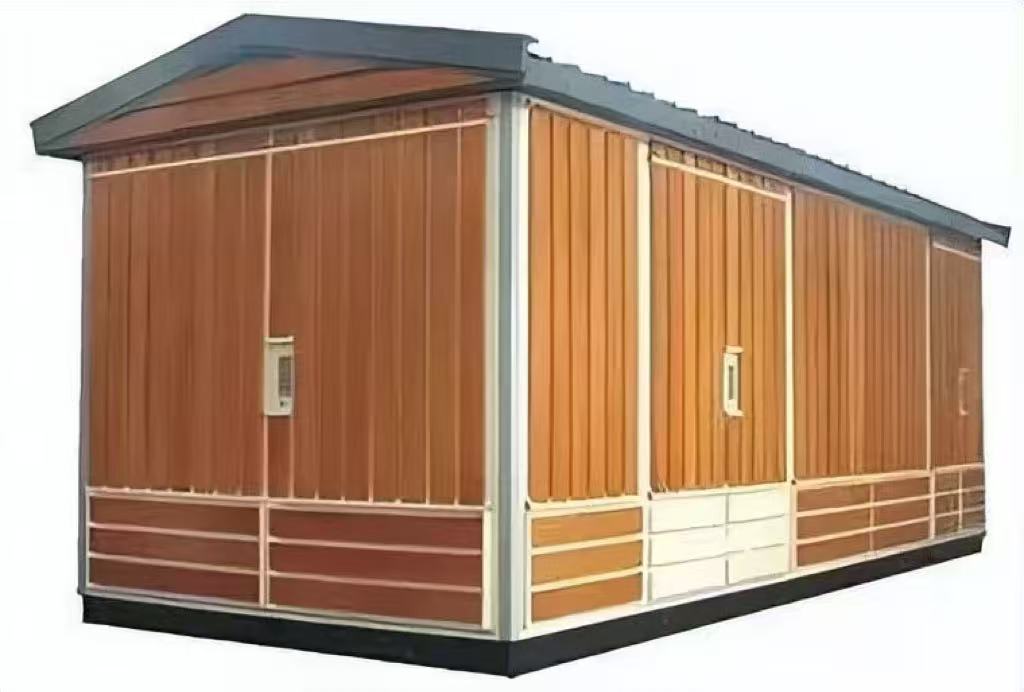 箱体采用钢板夹层(可填充石棉)和复合板两种,顶盖喷涂彩砂乳胶。箱体具有防雨性能。为监视、检修、更换设备需要设计通用门,即可双扇开启也可单扇开启,变压器室设有两侧开门的结构。变压器小室有供变压器移动用的轨道(外壳明显处设置铭牌和危险标志)。